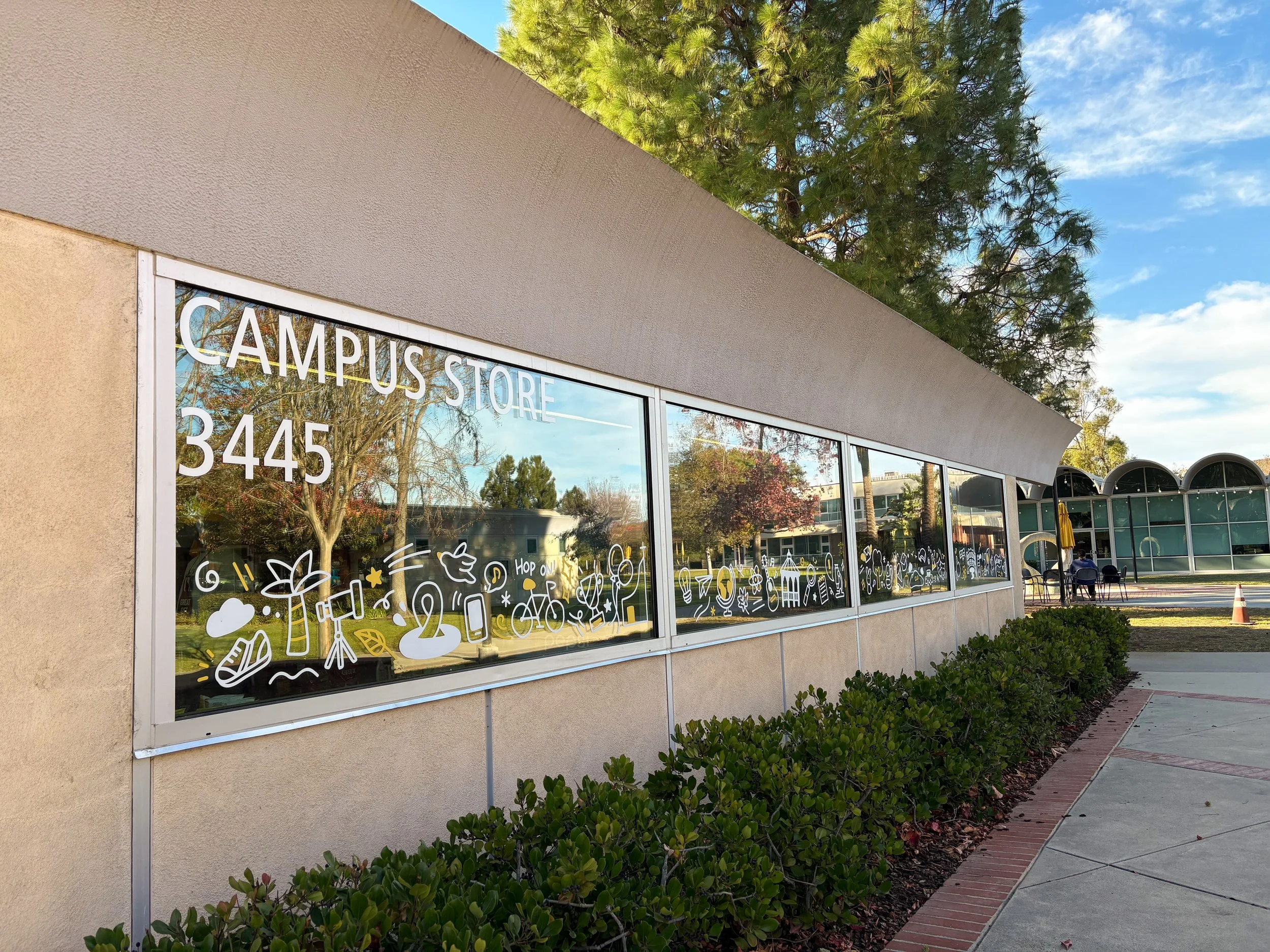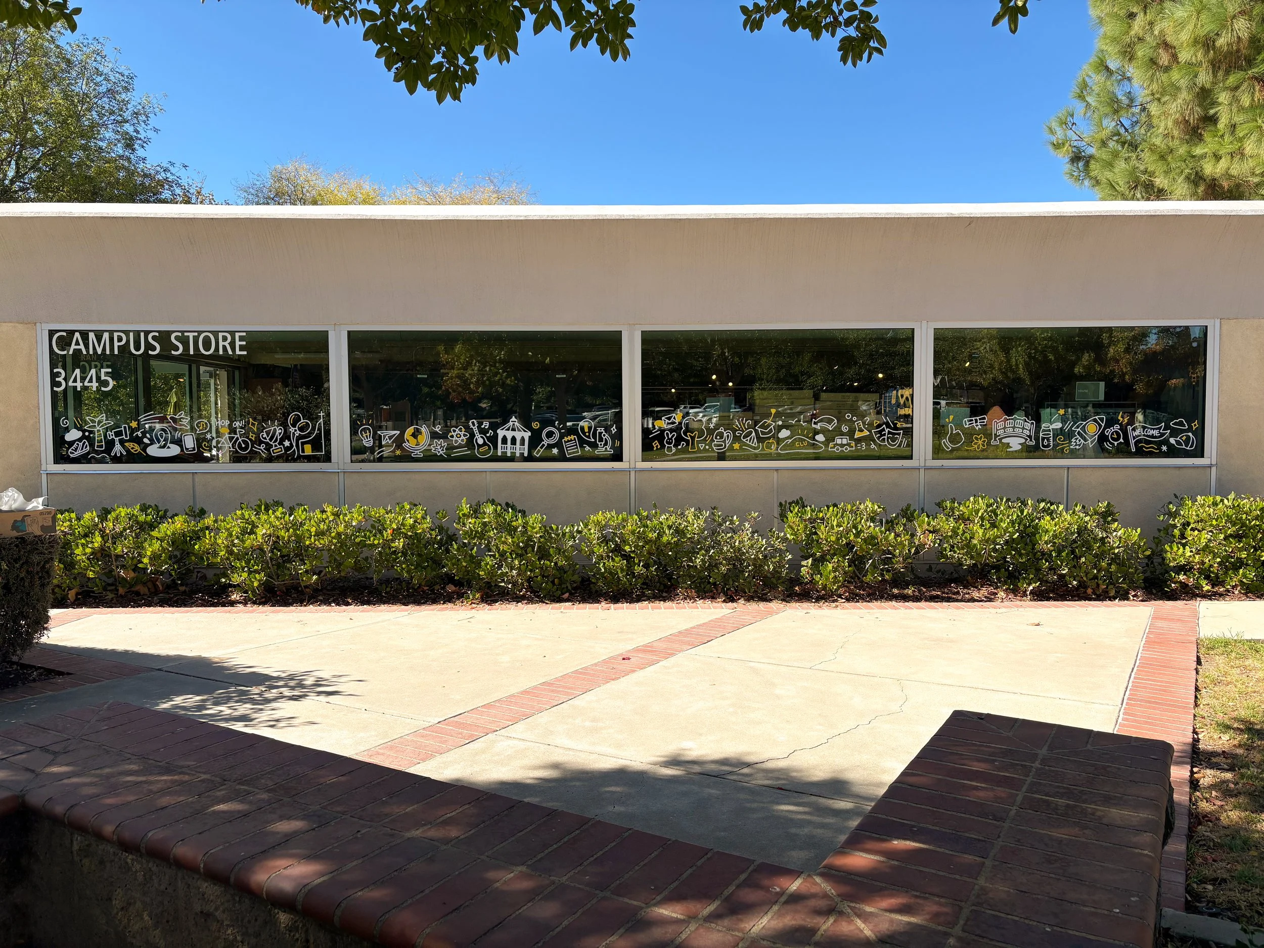 Cal Lutheran’s campus store aims to be a welcoming space for students, families, alumni, and visitors. However, its exterior—featuring only a single hanging banner and basic white vinyl—did little to reflect that goal.
